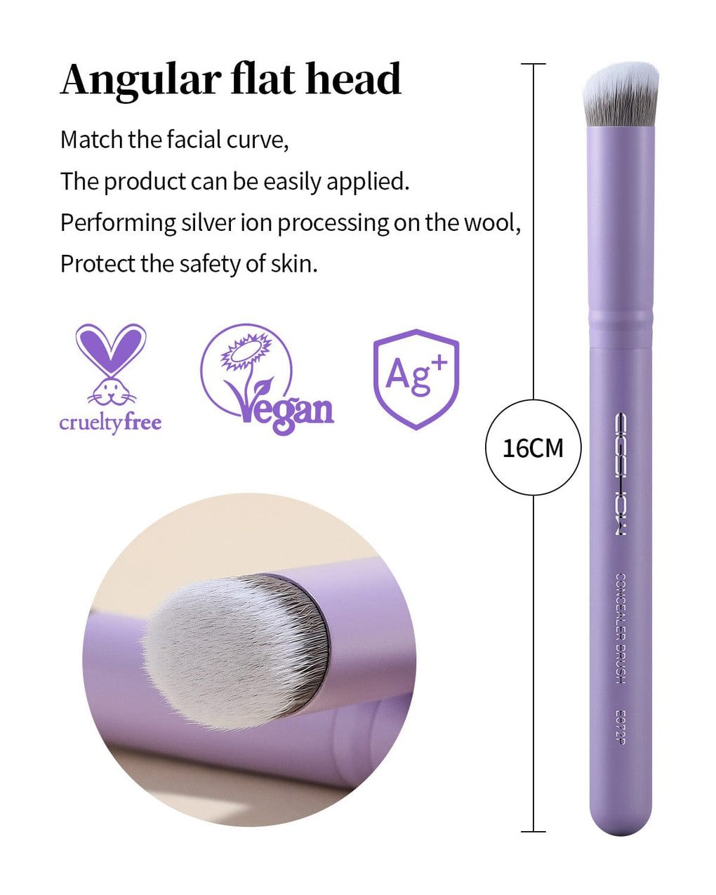 EIGSHOW Angled Concealer Brush | Silver Ion Bristles for Smooth Under-Eye Coverage Works with Liquid, Cream & Powder Purple (E872P)
