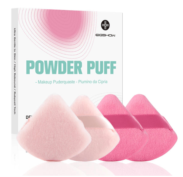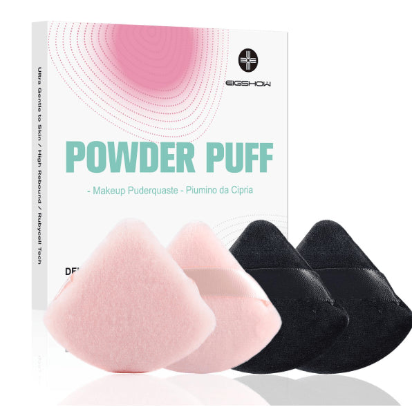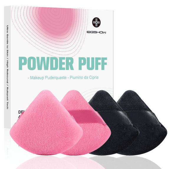 EIGSHOW Triangle Makeup Powder Puff, Face Sponge, Soft Plush Powder Sponge, Suitable for Baking Powder Makeup or Blush, Black and Beige, Pack of 4(M111,M112,M113,M121)
