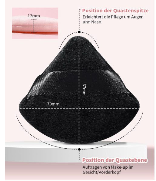 Our triangular-shaped powder puff is ultra-fluffy, dense, and soft to the touch, ensuring even and seamless powder application. Gentle on the skin and suitable for all skin types, it delivers a comfortable, professional makeup finish with every use.