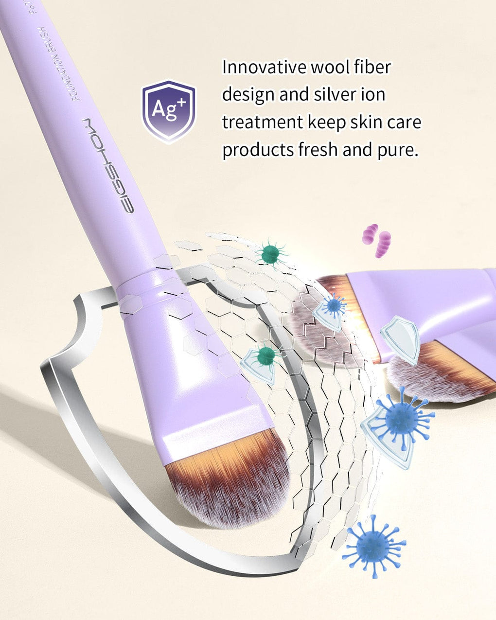 [A Premium Brush with a Luxurious Feel] This liquid foundation brush uses advanced fibers with silver ions, making it soft and skin-friendly, maintaining its shape even with repeated use. The fine brush head achieves a feather-light touch and a smooth airbrush effect. It doesn't irritate the skin, creating a natural beauty.